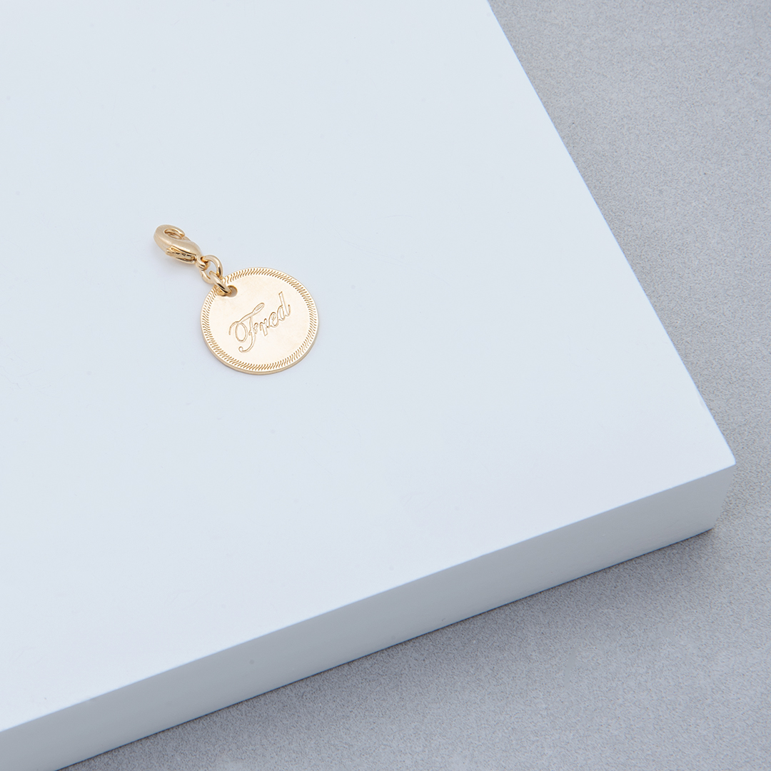 Este pingente sofisticado e elegante é a escolha perfeita para identificar seu gato ou cachorro com muito estilo. Feito de ouro 18k, ele apresenta um design redondo e é personalizado com o nome do seu pet, como no exemplo "Fred". Além disso, o pingente tem um acabamento delicado e uma borda detalhada, garantindo um visual refinado e único para seu amigo de quatro patas.